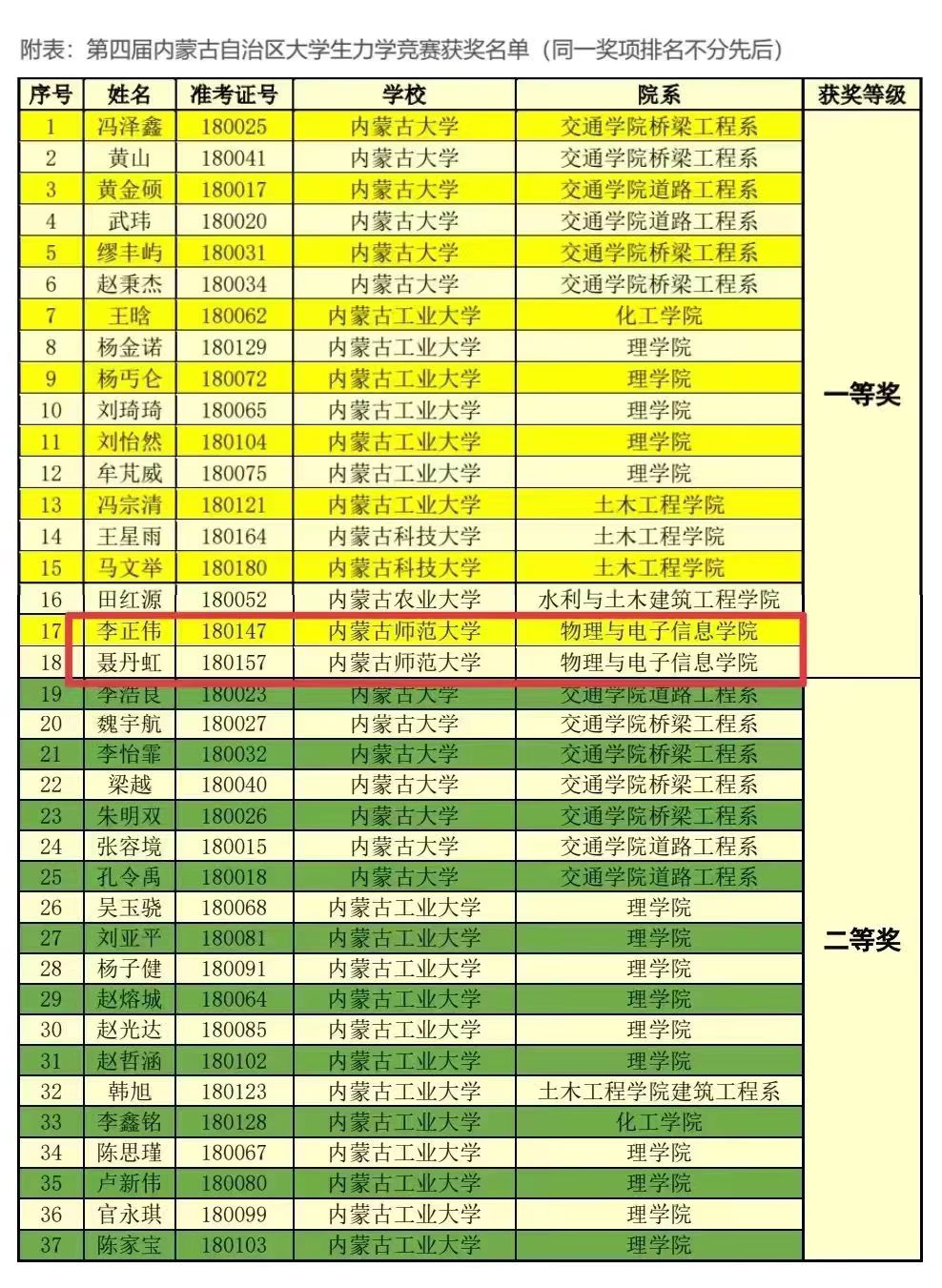 在5月30日结束的第十四届全国周培源大学生力学竞赛(内蒙古赛区)暨第四届内蒙古自治区大学生力学竞赛中,我院8名同学获奖,名单如下: