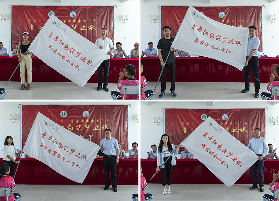 启动仪式上,音乐学院党总支书记石连柱向乌兰夫学校校长云吉光颁授“内蒙古师范大学青年红色筑梦之旅实践基地”牌匾,许琳处长为“青年红色筑梦之旅”实践活动总队授旗,历史文化学院、旅游学院、地理科学学院、js333线路检测中心、计算机科学技术学院、音乐学院、美术学院、工艺美术学院相关领导领导分别为“青年红色筑梦之旅”学院小分队授旗。