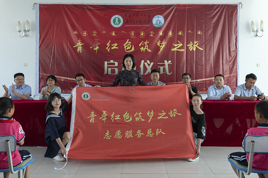 (文/万路盈)为深入学习贯彻习近平总书记给第三届“互联网+”大学生创新创业大赛及参加“青年红色筑梦之旅”的大学生重要回信精神,6月17日上午,内蒙古师范大学首届“青年红色筑梦之旅”启动仪式在土默特左旗塔布赛乡乌兰夫学校举行。来自内蒙古师范大学、乌兰夫学校百余名师生参与活动。