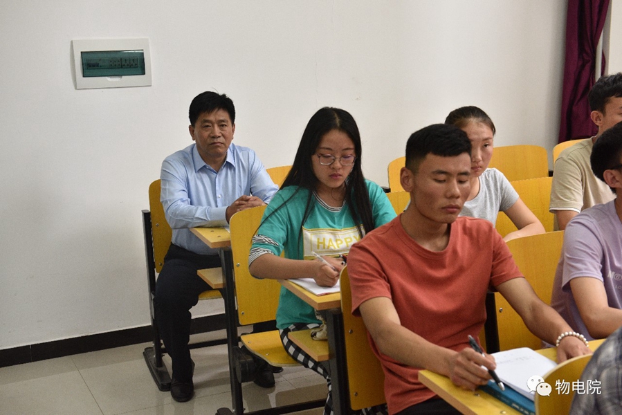 本网讯: 为深入贯彻落实全国教育大会、全国高校思想政治工作会议精神,着力构建全员育人、全过程育人、全方位育人工作体系,6月19日下午,云国宏校长来到联系班级我院2018级物理蒙班听课,并与同学们进行了面对面交流。学生工作处处长斯钦,党政办副主任白明、我院党总支书记刘美玲、副书记兼副院长张伟陪同参加了本次活动。 首先,云校长倾听了18蒙班教育见习课。在任课老师的指导下,两位教育硕士精心准备了课件,为本科生分别讲授了能量守恒定律和惯性,并展示了课程教案。在课堂上,通过单摆和小车等自制教具演示,形象的揭示了内在的物理规律。同时,台下听课的同学们化身“高中生”积极配合,课堂氛围热烈而活跃,在每一个研究生讲完课之后,同学们都结合自身对课程设计的理解,站在讲课人的角度向研究生提问,研究生“老师”们也一一为其解答。 课后,云校长为同学们做了精彩分享,并与物理蒙班的同学进行了亲切的交流。云校长充分肯定了学院在教师教学、学生学习等各方面的成绩,表达了与联系班级同学沟通交流、建立深厚师生友谊的美好愿望。他说,我和在座的同学们一样,也是物理学专业毕业,自己最大的兴趣就是专研物理,同学们日后将成为中学的物理教师,应该掌握扎实的理论和教学方法。希望与你们成为朋友,走近你们,了解年轻一代的想法,帮助大家解决思想、心理、生活、就业等实际问题,引导同学们学会做人、学会做事、学会学习、学会发展。 据悉,本次活动是落实《内蒙古师范大学校领导和职能部门领导联系班级制度》的内容之一,通过校领导和职能部门领导联系班级,潜心倾听学生心声,与学生面对面、键对键、心贴心,旨在着力构建全员育人、全过程育人、全方位育人工作体系,打造组织有序、上下联动的合力育人态势,形成同向同行、互联互补工作格局,从而做细做实做好我校学生思想政治教育工作,全心服务学生成长成才,共同营造我校全员育人的良好氛围。 研究生感想 张艺峰 首先我非常感谢学院能给我们教育硕士研究生在校内给本科生讲课的机会,对于我们来说是一个非常好的锻炼机会,通过给本科生讲课既可以发展自己备课讲课的实战能力,又可以得到本科同学的建议,从而在交流中促进自我的反思和提高,其次让我们意外的是云校长和学院的领导也来到了我们的课堂,参与了我们的教学活动,可以看到学校对本硕一体化的培养方案的重视,在课间云校长还分享了自己的教育教学的经历,让我们学习到了作为一个教育人应该有的责任与情怀,最后通过这次的教育见习活动我们都受益匪浅,希望我们真正走上教育岗位之后,如同学校学院的各位老师一样,不忘初心,继续学习,以成为一名优秀的人民教师而奋斗。 包萨如拉 我们收到要去盛乐讲课的通知后就开启了紧张的备课。当得知有校长及学院老师们要来听课的消息,我们都有些紧张。就这样我上台讲课了,在讲解过程当中有些细节还是没有处理发挥好。之后我们每个人都展示了各自的教学设计,并讲述了这节课的构思。最后老师及同学们也给我提出了一些建议,我收益很大。通过这节课我感觉到了,作为教师首先要不断提高自己的教学能力,在上课之前必须先进行深度备课,从而达到学生的深度学习。中间休息时云校长也跟同学们进行了互动讨论,我第一次近距离的感觉到了校长是一位和蔼可亲的老师。同时也感觉到了校长及学院老师都非常关注着我们这次进行的本硕一体化的教育见习活动。 额尔敦昭日格 通过这节课,我感觉到对于人民教师而言,你不单单要学会专业的学科知识,更重要的是要学会将自己的所学所得教给学生。教师在备课的过程当中不仅要熟知教材,更重要的是熟知学生。这样才能更好的备课。能将教育的作用更大化。在课程的最后还由老师和学生对我们的授课进行了简单的评价,并且给了我们一些比较有意义的建议。在这节课,我校领导和学院领导以及多位老师来听课。由此可知学校和学院对于我们的本硕一体化教学见习教育有多重视。希望自己真正的走向工作岗位之后可以不忘初心,认认真真的备好每一节课,上好每一节课。仔仔细细的做好课堂教学反思,从而完善自己的教学。 任利超 今天我们以研究生身份给本科大一的学弟学妹们上了一节示范课。在这个过程中既兴奋又有一些担忧,主要担心自己讲得不够好,达不到标准的示范效果。在准备这节课的过程中,我感触颇深:首先,上课前一定要充分准备。不但要细致地分析学生,充分地理解教材,精心地设计教学过程,选择恰当的教学方法,而且要对学生针对这一教学内容可能出现的情况作出预测。经过这节课的实践,我深刻的觉得课前准备越充分,在课堂上才能更好的发挥。反之,在教学过程中很容易出现问题并且导致自己手足无措。其次,课堂上要充分调动学生,让学生主动参与。因为教师教的重要任务之一就是如何让学生认真听讲、主动思维、积极配合、自觉学习。在学生主动参与的过程中激发学生的兴趣,培养学生自学能力,使学生产生学习的渴望和动机,真正实现学生的主体性。再次,我们要使教学设计在课堂上发挥淋漓尽致的作用。通过对教学过程以及教学中可能出现的问题和解决方法的一种事先预设,让它更合理、科学。最后,就是反思环节。在学弟学妹的提问中和带