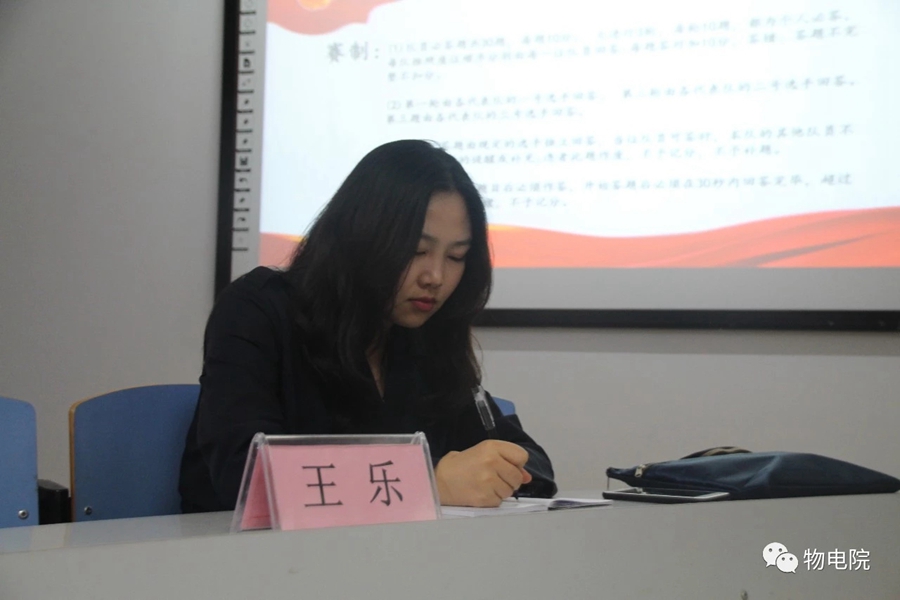 本次比赛分为队员必答题、团队必答题和风险题三个部分。在主持人宣读规则后,比赛正式开始。在必答题部分,同学们沉稳发挥、对答如流,无论是个人题目还是团体题目,都取得了不错的成绩。接下来到了紧张刺激的风险题,在答错倒扣分数的压力下,选手们的大脑高速运转,超常发挥连续拿分。经过一个小时的激烈竞争,最终,比赛以18级物理汉班、18级电子信息科学与技术班、18级材料物理班获得前三名而落下帷幕。