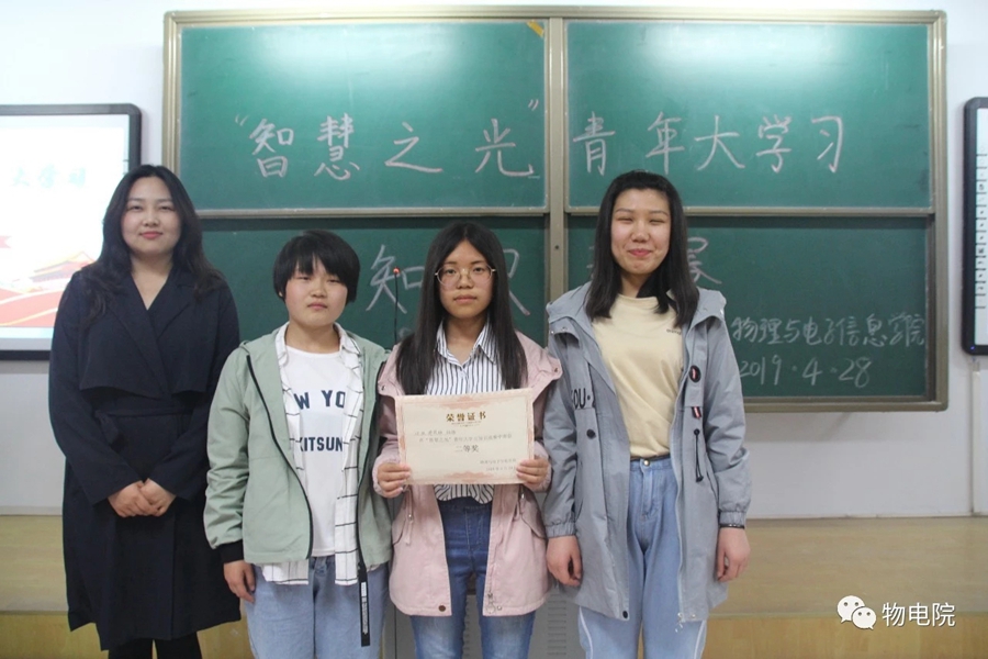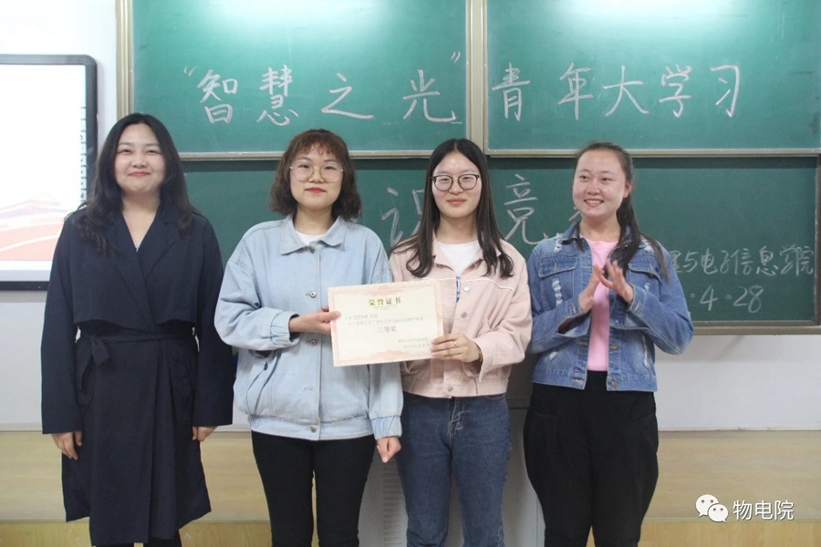 为响应共青团中央发出的部署全团开展“青年大学习”行动的通知,推动习近平新时代中国特色社会主义思想在青年中入耳入心,引导广大青年不忘初心、牢记使命,切实增强“四个意识”、树立“四个自信”,4月28日,我院于行知楼306 举行了 “智慧之光”青年大学习知识竞赛。辅导员王乐担任评委,来自17、18级的七个班级组成的代表队参赛。