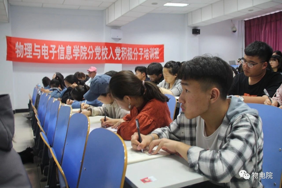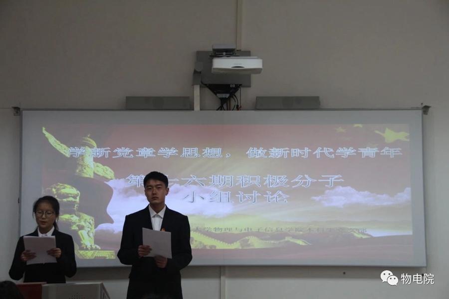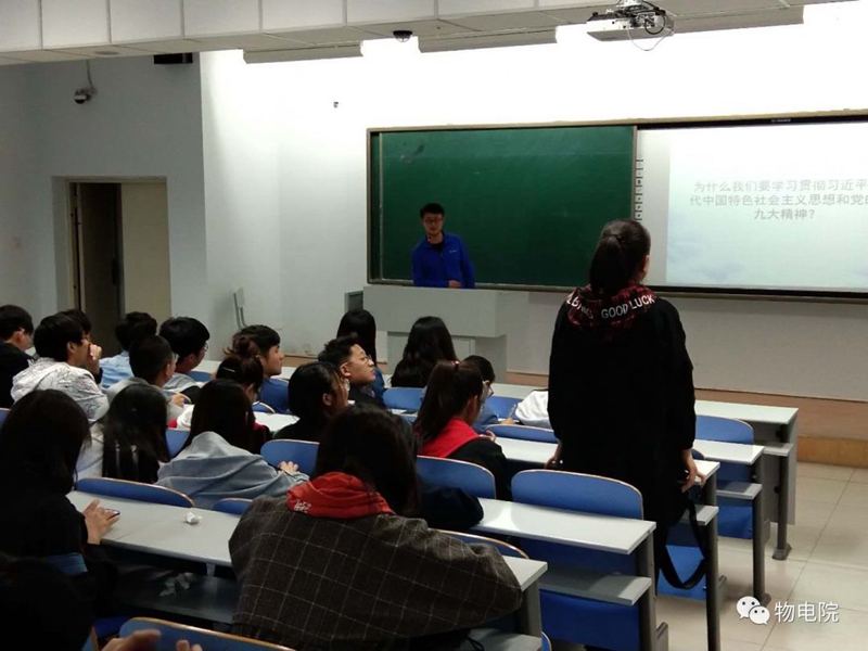 1、积极分子党课培训 为学习贯彻习近平新时代中国特色社会主义思想和党的十九大精神,不断提高入党积极分子的思想政治素质和政治理论水平,进一步提高入党积极分子对党的认识,为光荣加入党组织奠定坚实思想基础,我院邀请自治区人民政府特约研究员、二级教授杨一江老师受邀为入党积极分子做《十九大新党章解读》主题讲座。杨教授结合自己多年的收获和心得,重点从“党章的完善”“党章的地位和作用”“如何学习党章、遵守党章、维护党章”三个方面详细讲解了党的十九大中有关党章的具体内容,使同学们受益匪浅,并举行小组讨论会,探讨、分享对于党章的认识与理解。 2、积极分子实践活动 为培养同学们勤于劳动,乐于奉献的良好品质,以实际行动践行习近平新时代中国特色社会主义思想和党的十九大精神,我院入党积极分子进行“清扫实验室”社会实践活动,在劳动中收获思想的升华。
