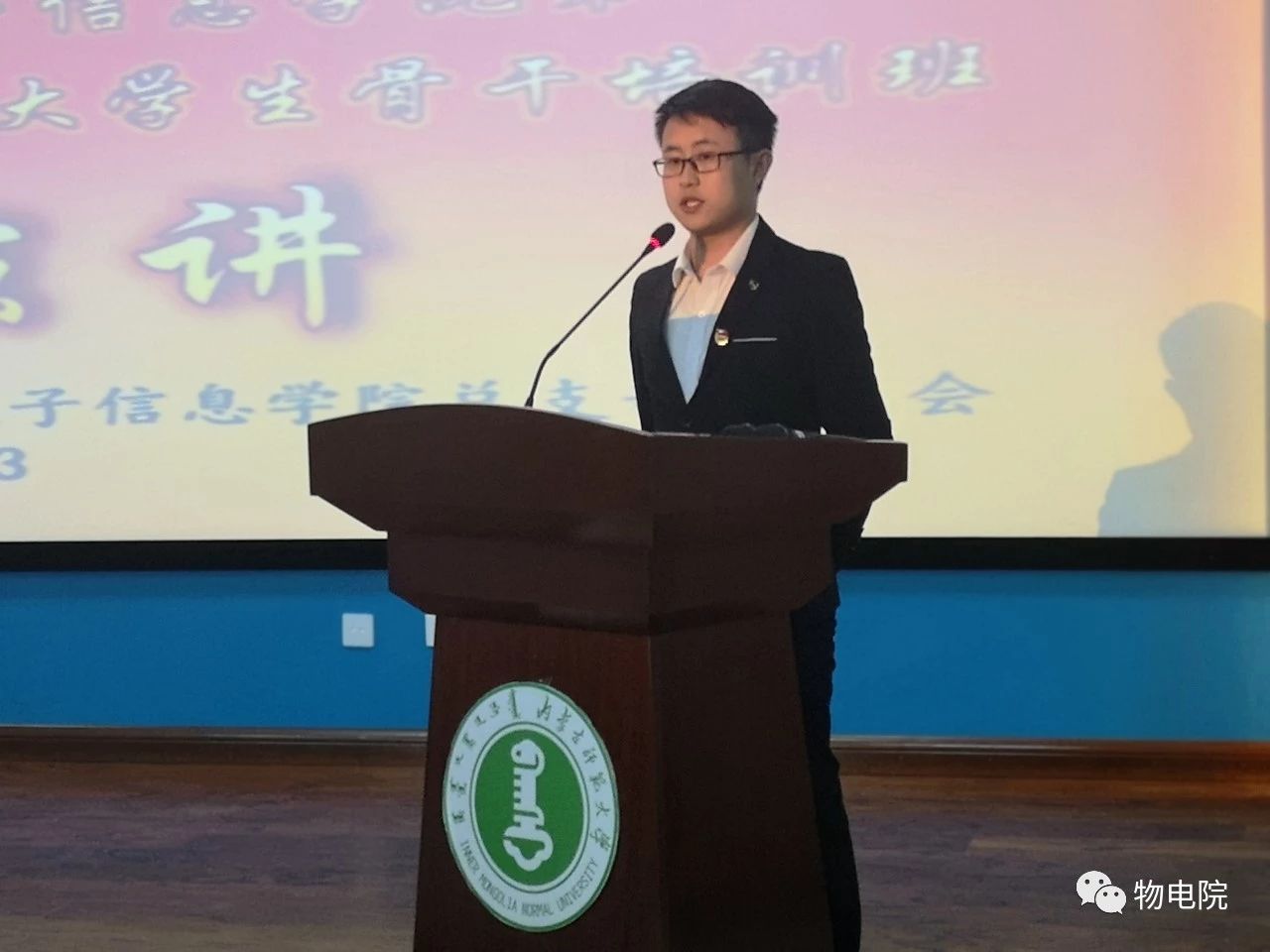 接着宋鑫伟老师回忆起了他的青葱岁月。聚集在内蒙古自治区青马班的人都是来自全区各地的精英,从47万大学生中选取22个人,他便名列其中。当他拿到培训手册的那一刻,心中感慨万千。他认为,不仅能提升个人修养与思想道德素质,更重要的是能和各种各样优秀的人相识相知、取长补短、共同进步。同学们都深受鼓舞,纷纷表示想要拥有同样宝贵、难忘的人生经历。