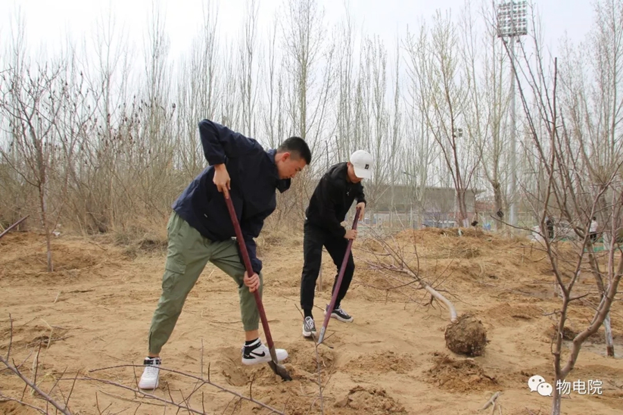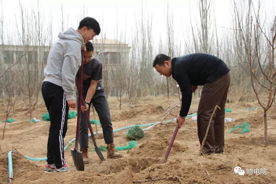 为唤起同学们植树造林、保护环境的意识,4月18日下午,我院组织17、18级全体男生来到体育场东南侧白桥下植树。本次植树活动由党总支副书记兼副院长张伟,辅导员王乐、宝力尔带队。