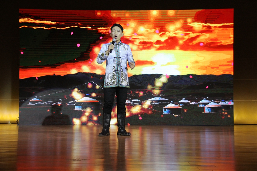 灯光熄灭,观众们的目光被别出心裁的先导片所吸引。影片讲述了新生们从备战高考到来到内师大物电院报道的经历,勾起了同学们无数的回忆。我院领导老师以及18级各班班主任也出现在大屏幕上,对同学们表达了最真挚的欢迎以及殷切的期望。随后,一首洒脱奔放的《像风一样自由》正式拉开了晚会的序幕。四位端庄大气的主持人现身舞台中央。他们衣着华丽,意气风发,言语间透露出满满的自信与活力。古香古色的《玉人歌》展现了玉人们柔美的身段和悠扬的歌声,由辅导员王乐和五位同学们的组合完美演绎了新颖别致的歌曲串烧《声之形》;18工程班青春靓丽的少年少女们深情献唱《热勇》,用青春活力点燃花样年华;神秘的墨镜下,身穿蒙古袍的蒙古族女孩们以舞蹈《拥抱明天的太阳》尽情挥洒梦想。优雅别致的乐器弹唱《浮生未歇》带我们回到了樱花纷飞的季节,辅导员宋鑫伟和18级电子信息工程班程雪琪同学的朗诵《党旗颂》深情歌颂了拥有五千年历史的华夏之光。激动人心的抽奖环节来临,摇动的数字锁定了7位幸运观众,而我们也有幸能欣赏获得一等奖的幸运观众献唱《年少有为》。晚会继续,优美动听的独唱《乌兰巴托之夜》使我们仿佛置身于乌兰巴托静谧美好的夜晚;动漫社的coser们友情出演的舞蹈《极乐净土》将全场的气氛推向沸腾的高潮;相声《铃铛谱》以幽默诙谐的语言惹得观众们捧腹大笑;18物理学蒙班的同学们身着华丽精致的蒙古族服装款款走来,向大家展示民族服装独特的魅力与风情;活力四射的舞蹈《dancing our soul》让大家领略了斗舞的精彩激烈;由17级物理学蒙班全体同学以及班主任木其尔献上磅礴的合唱《永远的蒙古》,描绘出一望无垠的碧波草原。最后,领导老师们走上舞台,与演员们亲切合影,为晚会画下了完美的句号。