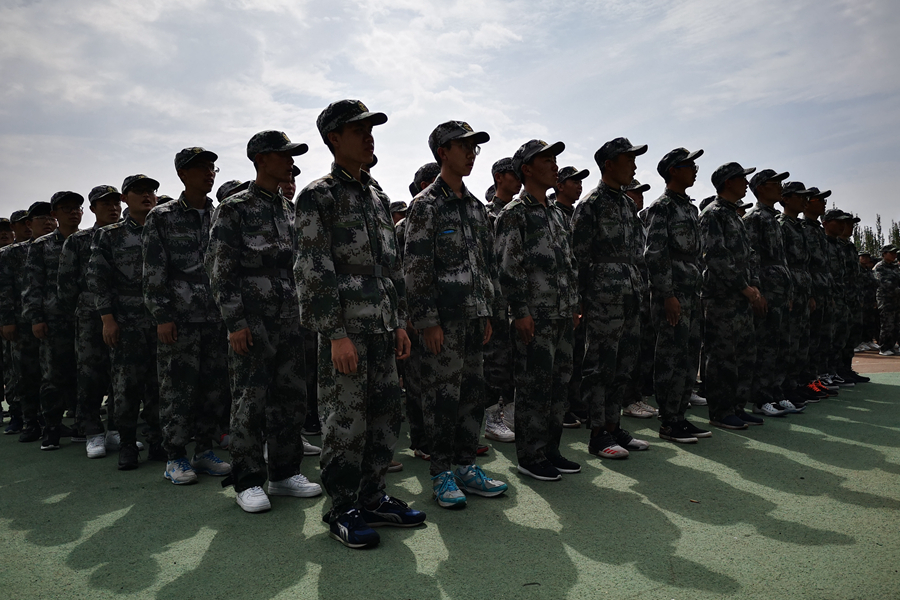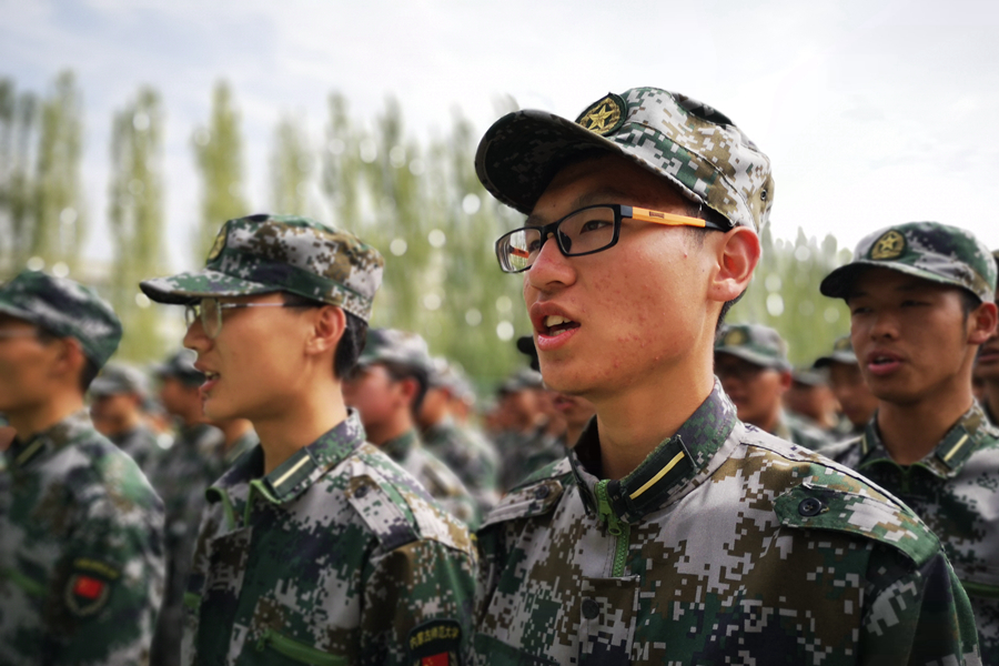 为了在军训考核中取得好成绩,“小绿人”们不仅每天接受着严苛的队列训练,还要练习两首参赛歌曲。一首是我们耳熟能详的师大校歌,另一首则是铿锵有力、让人热血沸腾的军歌,《练,练,练》。这首简短精悍的军歌形象地描述了中国军人艰苦训练甘愿为国家奉献青春的那份执著,同时也带给了同学们无限的动力与热情。