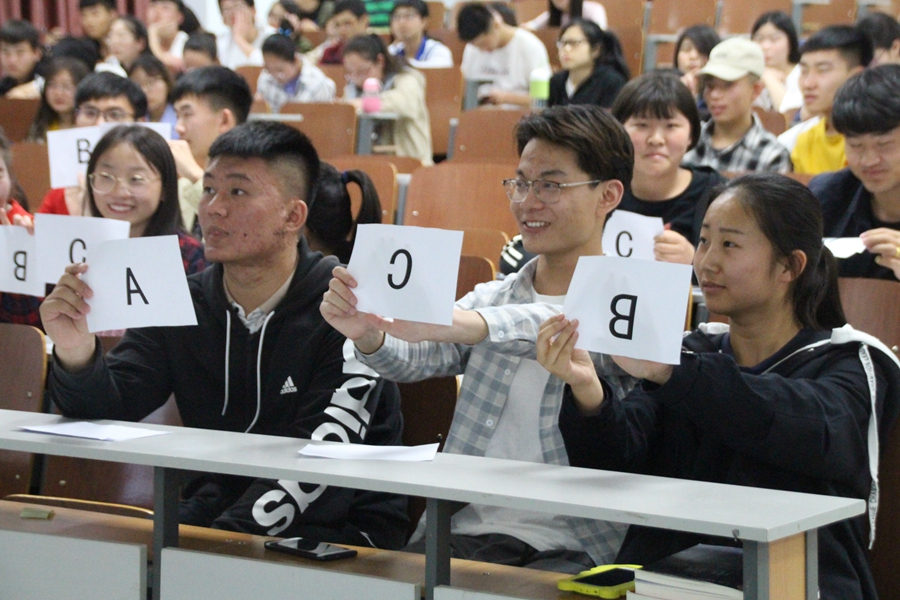 在主持人宣读规则后比赛正式开始,本场比赛比赛分为三部分,第一部分是必答题;第二部分是限时答题;第三部分是风险题。同学们在必答题部分沉稳发挥都取得了不错的成绩,限时答题中则快速细心尽力拿分,风险题则是在压力下超常发挥连续拿分。