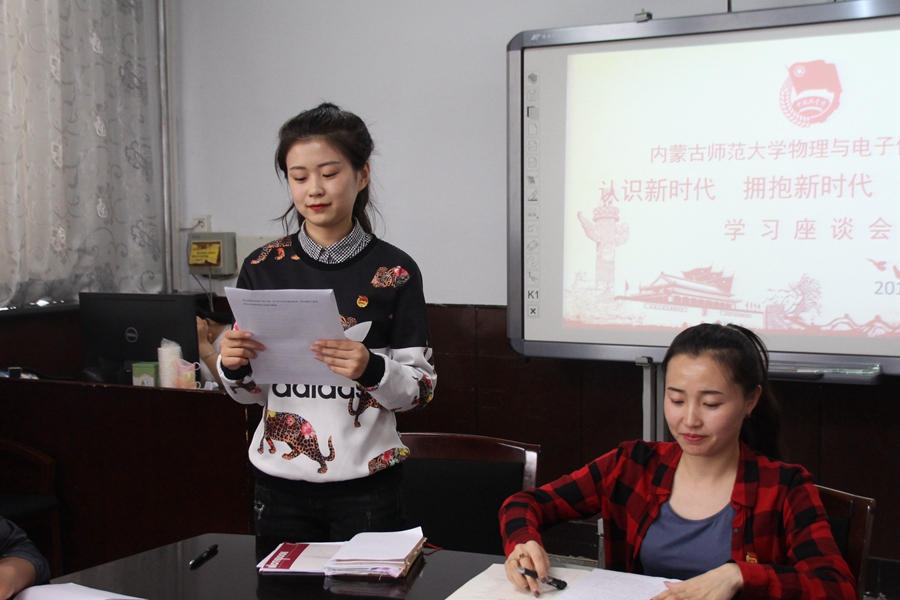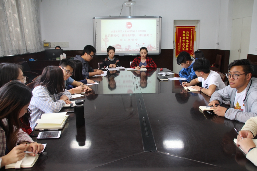 2018年5月4日,我院于物理楼会议室召开“认识新时代,拥抱新时代,耕耘新时代”学习座谈会,学习习近平总书记5月2日在北京大学师生员工座谈会上的讲话与李纪恒书记5月3日在内蒙古工业大学形势政策报告会上的报告精神。学院各班级团员代表共54人参加会议,学工办木其尔老师主持会议。