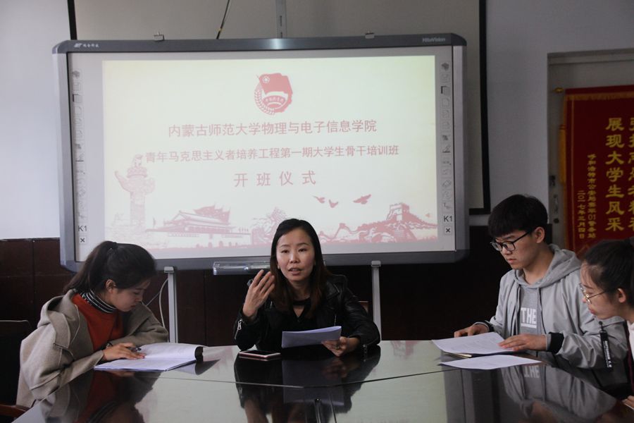为加强我院大学生骨干、共青团干部及青年知识分子的思想道德修养,js333线路检测中心于2018年3月23日在物理楼会议室举行青年马克思主义培养工程第一期大学生骨干培训班开班仪式。我院团总支书记萨其尔老师主持会议。