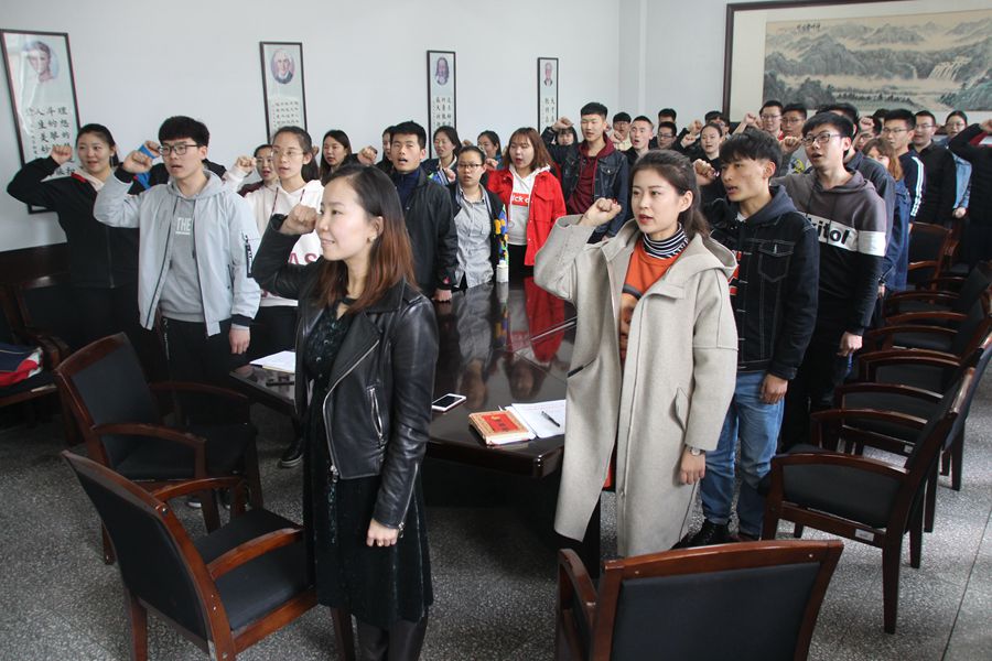 大会第一项,全体起立奏唱共青团团歌。随后,萨老师带领全体学员宣誓,并从学生干部、老师的角度分别阐述了对马克思主义的思考,介绍了参加青年马克思主义培训班的必要性和意义。萨老师指出,培训班的开办不仅是为了培养大学生骨干,更是为了让广大青年认识马克思主义,了解马克思主义,提高学生的思想道德水平及实践能力。同时今年是马克思诞辰200周年,在这样一个特殊的时间节点上,同学们应该以更加饱满的热情投入到马克思主义的学习中去。大会第三项,学院学生会主席王震同学向全体学员宣布学员须知与纪律管理规定。最后,萨老师向同学们介绍了活动日程安排,包括户外活动与主题宣讲会等。