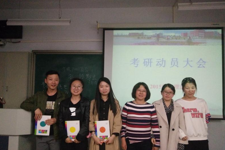 考研动员大会主要由两部分组成。首先,田老师从目前考研形势、政策、历年录取分数以及本班同学们的自身情况等方面展开系统性的讲解,并鼓励大家努力的学习,开拓自己的视野,发掘自己的能力,全面提高自己的综合水平。其次,由学长学姐们用诙谐幽默的语言向物理汉班的学弟学妹们介绍自己考研的院校,传授考研的经验,分享考研的学习方法,并讲述自己一年来的收获与成长。大会最后,田晓老师为2014级学生精彩的讲演奉上自己精心准备的礼物,并与他们合影留念,同时祝福14级学生前程似锦,15级学生们梦想成真。
