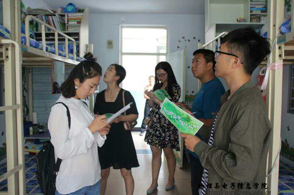 为了培养在校大学生的主人翁意识,倡导积极乐观的人生态度和健康生活方式。我院举办了主题为“青春'绿'动,爱在'室'界”的宿舍文化月活动。2017年6月9号上午,我院学工办苏雅拉老师、塔林托亚老师,学生会主席团以及生活部共同担任此次评委,深入宿舍,就寝室风貌、内务卫生、寝室特色等方面进行评比打分。