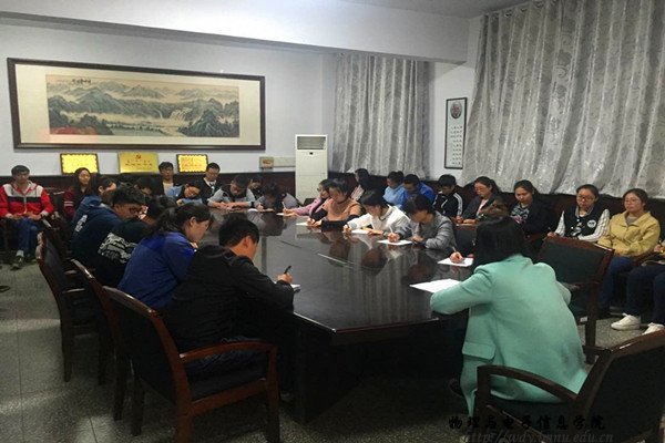 本网讯 为深入学习贯彻习近平总书记重要讲话精神,扎实推进共青团改革,大力推进从严治团,切实增强团员的先进性和光荣感,根据团中央《关于在全团集中开展“学习总书记讲话做合格共青团员”教育实践的通知》精神和校团委部署安排,2017年3月29日晚,我院在物电院会议室召开“学习总书记讲话 做合格共青团员”教育实践部署会议。出席此次会议的人员有,学工办塔林托亚老师、学生会团总支成员以及各班团支部负责人。