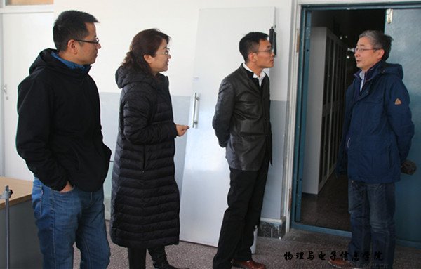 本网讯 如何有效地开展物电院特色学科实验,并且保障实验室安全,是我院安全管理者时刻警觉的问题。2016年12月12日下午,我院院长特古斯、党总支部副书记何小龙老师、副院长刘美玲老师以及学院老师们进行了实验室安全检查工作。