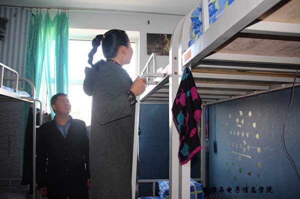 本网讯 为进一步提高学生环境安全意识,创建整洁文明的学习和生活环境。2017年2月28日上午,我院团总支书记萨其尔老师,学工办苏雅拉老师和塔林托亚老师带领学生会成员对我院所有学生宿舍进行了日常内务卫生检查。