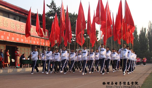 此次运动会共设十一个项目,共三百二十七名运动员参加比赛。比赛开始,运动员们精神抖擞 ,竭尽全力展现自己的风采。跳高运动员挑战地心引力,跳远运动员如飞鸟般略过,铅球运动员一掷间的气场,短跑运动员如子弹射出,长跑运动员挑战自我的毅力无不为运动会增光添彩 。场下的学生会成员认真工作,默默付出,默契配合,为院运会贡献出自己的一份力量。在闭幕式上,何小龙老师宣布团体总分及精神文明奖、最佳创意奖等奖项。最终15物理蒙班获得团体总分第一名,14工程获得第二名,16物理蒙班获得第三名。颁发了三个精神文明奖,两个入场创意奖,十名优秀运动员。各领导老师对优秀运动员,优秀班级进行颁奖,对没有获奖的运动员和班级进行了鼓励,同时何小龙老师向国旗护卫队授予了“用铿锵步伐护送,用热血青春捍卫”的锦旗,随后何老师致闭幕词,届时我院第28届田径运动会圆满落下帷幕。
