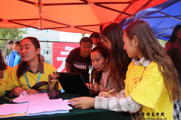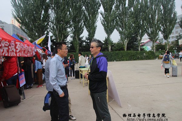 本网讯 2016年9月6日上午,我院2016年迎新工作在本部东篮球场正式拉开帷幕,由我院团总支书记萨其尔老师,学工办苏雅拉老师和王星老师带领迎新工作小组,与我校各职能部门的密切配合下,各项迎新工作均正常有序进行,热烈迎接来自全国各地的2016级新生。在迎新过程中,我院院长特古斯教授、党总支副书记何小龙老师分别来到迎新现场,亲切看望工作人员和新生家长朋友们,并了解迎新情况,指导迎新工作,并勉励大家,要再接再厉,打好这场迎新漂亮仗。同时,2016级各班班主任也莅临现场,及时同新生和家长朋友们见面,答疑解惑,互相交流,让家长朋友们对孩子生活的地方有更清晰的了解。