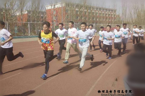 本网讯 2016年4月22日下午,我院15名体育健儿在学工办苏雅拉老师带领下前往盛乐校区参加我校夏季马拉松长跑比赛。此次比赛选手众多,其中职业选手也不在少数。在场外热烈气氛的感染下,参赛选手奋力拼搏,争先恐后,每个人都以顽强的意志和坚定的决心坚持到最后一刻。经过一番激烈的角逐,最终我院15级物理蒙班宝吉如嘎在女子组取得第九名的好成绩,而男子组比赛同样激烈精彩,我院健儿也取得靠前的名次。通过此次比赛,既达到了加强体育锻炼,提高身体素质的目的,同时也展现了我院学生团结协作和永不言弃的精神,为日后体育工作的开展打下了良好的基础。