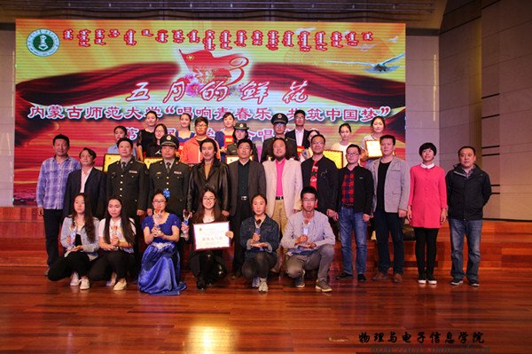 本网讯 2016年5月6日晚,由我校团委主办的“五月的鲜花”内蒙古师范大学“唱响青春乐,共筑中国梦”第二届大学生合唱节在逸夫楼音乐厅准时落下帷幕。我院院长特古斯教授,党总支副书记何小龙老师与同学们观看了合唱比赛。