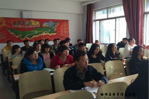 本网讯 2015年10月14日下午,我院在田楼120教室召开了12级物理汉班教育实习动员大会,出席会议的老师有我院副院长吉日嘎拉教授,实验创新部主任曹永军教授和12级物理汉班班主任李瑞芳老师。动员大会上老师们分别就实习的重要性、实习对于走向工作岗位的帮助以及实习时应该注意的事项进行了深入的讲解,并要求大家保质保量的完成实习任务。大会的最后吉老师鼓励大家珍惜机会,认真对待,争取通过实习使自己的能力得到提高。
