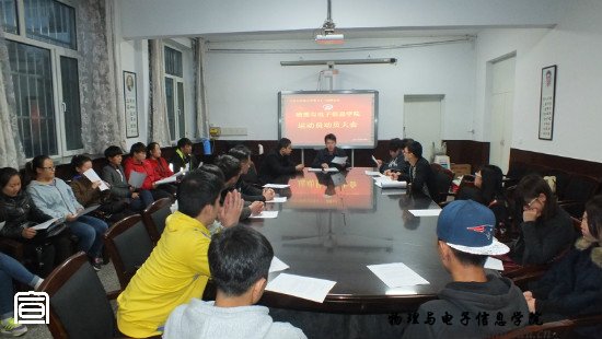 本网快讯 2015年4月8日晚七点,我院在物理楼会议室召开第五十三届校运会运动员动员大会。我院学工办宋志强老师出席并主持大会,参加会议的有教练员李宁、高毓、张云龙和学生会副主席史明洋及参加此次夏训的运动员。通过此次动员大会,相信我院健儿经过刻苦训练,定能在校运会上再创佳绩!