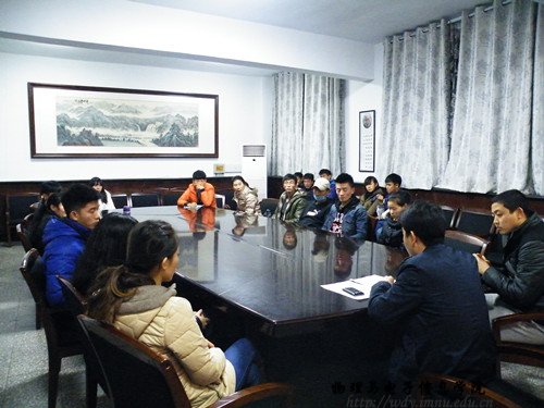 本网讯 11月18日晚七点,我院在物理楼会议室召开2014年冬训动员大会。宋老师出席并主持会议,参加会议的有学生会副主席史明洋、体育部部长刑森荣及部员及参加此次冬训21名运动员。