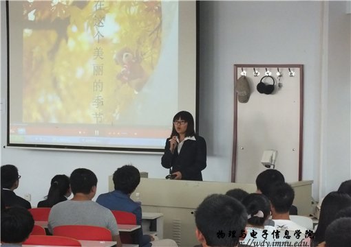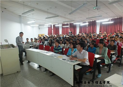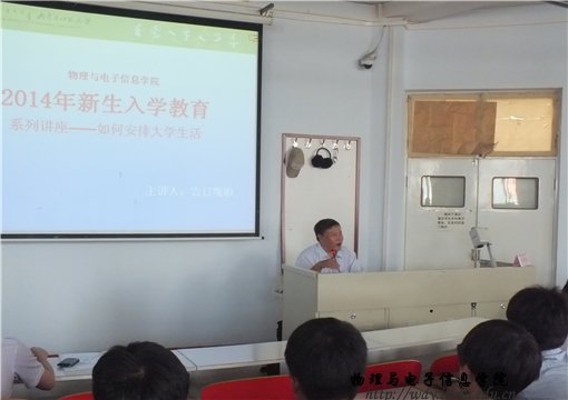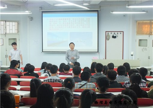 九月四日一早,大一新生们就纷纷来到物理楼下,等待集合点名,随后由我院学生会成员带领大家来到田楼十二共等待我院党总支副书记何小龙老师关于“了解我院学生管理情况”的系列入学教育讲座。九时整,何老师准时来到现场,就我院学生规章制度、思想政治教育工作、人才教育培养工作等大家所共同关心的问题一一作了详细解释,在场同学们都十分认真的听讲做记录。