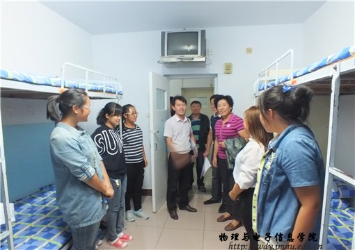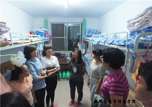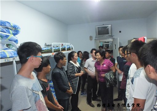 傍晚来临,我院党总支书记阿梅老师特意下班后留在学院,等待和各班班主任们一同去新生宿舍看望新生和了解住宿情况。来到宿舍后,阿梅书记深入到每个男女生宿舍,实地看望了2014级新生,嘘寒问暖,看到每个宿舍的成员相处融洽,她欣喜地说:希望你们团结互助,开心学习生活,多锻炼,健康快乐成长。随后,她特地看望了一位来自维吾尔自治区的小姑娘,并勉励她们宿舍的每个成员:希望你们搞好民族大团结,我们都是守望相助的一家人。同时,同学们对阿梅书记的到来,十分欣喜,纷纷热烈鼓掌迎接,围绕在阿梅书记身边,聊家常,说学习,谈运动,话人生。在中秋佳节来临之际,阿梅书记的此次夜行,真正让同学们感受到了学院的关怀,更多的是一种家的温暖体贴。