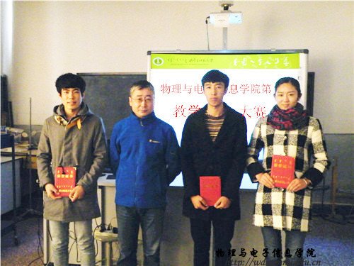 本次教学大赛以抽签的形式从教师口语、教学、授课内容设计、重难点把握、教学方法、板书设计等方面对参赛选手进行综合考核。各参赛选手说课材料准备充分,课堂教学目的明确,教学思路清晰,教学过程设计合理,语言表达准确精炼,教学方法独特新颖。选手流畅的讲解,优美的板书,端庄大方、挥洒自如的仪态,展现了过强的教学技能和教师风采。最后各评委老师对各选手进行了耐心细致的点评并为他们颁奖。