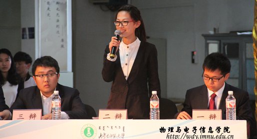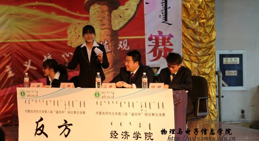 总决赛蒙语组在我院代表队和蒙古学学院代表队中展开,汉语组在我院和经济学院代表队中进行。两场比赛分别在“人生最大的敌人是自己/他人”、“网络语言会/不会冲击传统文化”张开了精彩而激烈的辩论。在两场比赛中,双方以幽默的语言,机智的应变,严谨的逻辑不断将比赛推入高潮,也让在场观众切实感受到了语言魅力的交汇和思维碰撞的火花。最终蒙古学学院和经济学院分别取得了蒙汉语组的冠军,我院的张宇和蒙古学学院的苏日娜分别获得了全场最佳辩手。