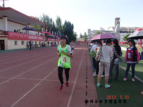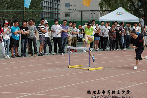 在今天的比赛中我院健儿再创辉煌:哈布日获得女子400米栏第一名、萨日娜获得女子跳高第二名、顾啸天获得九项全能第一名、刘国玉获得男子铅球第八名、张振元获得男子110米栏第六名、丁泽民获得男子400米栏第六名、男子4*100米获得第四名。