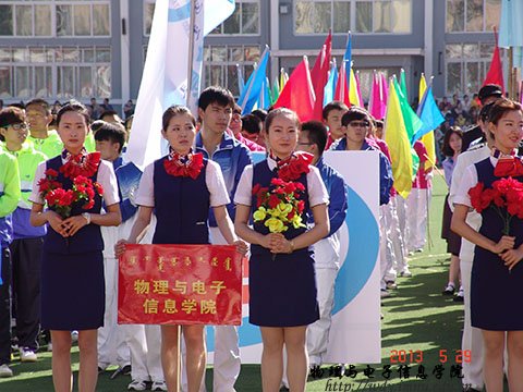 2013年5月30日8:00,我院同学在赛罕校区参加了我校第五十一届田径运动会。在热烈喜庆的开幕式方阵中,各个学院迈着整齐的步伐经过主席台,接受检阅。其中,我院以别具匠心的彩旗队和创意个性的滑翔伞掀动了整场的高潮,队员们昂首阔步,意气风发,尽情挥洒着青春活力,嘹亮的口号响彻云霄,赢得了现场师生们的声声赞叹,同时也展现出了我院师生团结一致的合作精神。