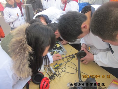 早上9点,科协会员在协会干部的带领下,开展义务维修活动。活动中协会的成员本着“学雷锋献爱心的精神” ,对老百姓送来的家电进行认真的检测与维修,并耐心的为他们讲解。协会人员认真负责的工作态度赢得老百姓的高度赞扬。