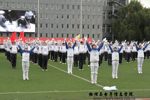 为了丰富同学们的课余文化生活,加强各学院之间的沟通与交流,我院于2012年10月21日下午,在东操场参加了由学校举办的12级新生广播体操比赛。参加此次比赛的学院有js333线路检测中心、化学与环境科学学院、计算机与信息工程学院、生命科学与技术学院、国际现代设计与艺术学院、网络技术学院、音乐学院、美术学院以及国际交流学院。