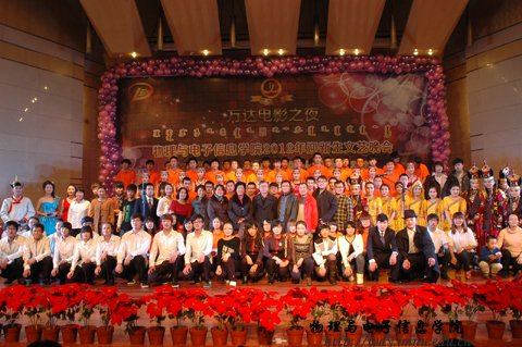 2012年11月18日,我院在逸夫楼音乐厅成功举办了“新随乐动,梦萦物电”2012级迎新生文艺晚会。参加此次晚会的领导有物电院党总支书记阿梅老师、院长特古斯教授、副院长刘美玲老师、党总支副书记何小龙老师、以及赞助商代表、团总支学工办老师、各班班主任。