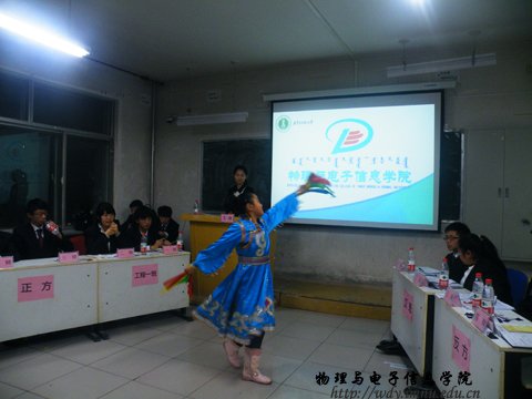 正方工程一班与反方物理汉班的八位辩手对关于“网络使人疏远还是亲近”展开辩论。比赛开始后,双方开场陈词,一辩精彩的发言成功调动了整场气氛,据理力争,精彩迭现,在攻辩阶段和自由辩论阶段,辩手有针对性的反驳对方观点,提出网络对人际关系的影响及实例,也不乏引经据典,多方论证。辩手们滔滔不绝,不相上下,将全场气氛推向高潮,辩论赛在四辩的总结陈词中进入尾声,最后各班级还进行了才艺表演,物理汉班荣获本场辩论赛的胜利。
