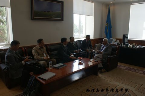 2012年8月20日,我院特古斯教授、赵凤岐教授等一行参加在乌兰巴托举行的国际材料科学会议。特古斯教授在会议上作了关于磁制冷材料方面的学术报告,并与各国学者就有关问题进行交流。同时参观访问蒙古国立大学,与国立大学校长进行座谈。双方都表示内蒙古师范大学和国立大学一直保持了很好的合作关系,希望进一步加强双方师生交流,加深科研领域合作。