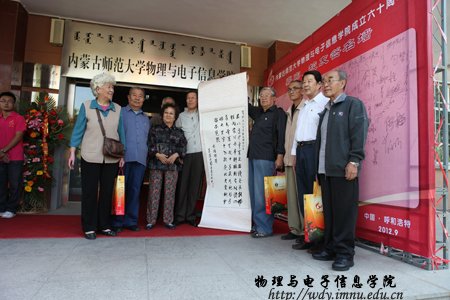 经过全院师生紧张而充分的前期准备工作,9月8日上午,全院师生热情接待了400余名来自四面八方的各界校友;上午各位校友在志愿者引领下参观了学院教学科研成就展并与老教师们进行了亲切的交谈,11时,全体校友在图书馆前合影留念,中午12时,全体人员在海航大酒店二楼宴会厅隆重举行了庆祝js333线路检测中心60周年院庆典礼和午宴,庆典由党总支书阿梅主持,阿书记代表学院对恭贺单位和个人表达了谢意,特古斯院长回顾了作为自治区建置最早的一所院系60年取得的成就,感谢各位前辈和各届校友对学院发展过程中给予的各方面的支持也展望了学院未来发展的远景;