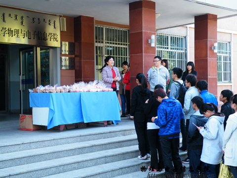 2012年9月30日,在中秋佳节与国庆节来临之际,我院党总支书记阿梅老师、学工办呼和老师、侯爱玲老师代表学院全体领导、教师在js333线路检测中心门前,对未回家过节的学生进行了慰问。