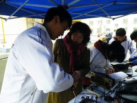 2012年3月4日,为实践雷锋精神,我院家电义务维修青年志愿者服务队,在学工办王伟老师和实践创新实验室郭小平老师的带领下走进世纪御园小区为居民进行家电义务维修活动。