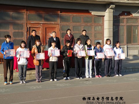 比赛过程中,我院运动员个个激情奔放,争先恐后,充分展现了同学们不畏寒冷,勇于拼搏的精神。在同学们此起彼伏的“加油”助威声中,赛场上的每位运动员都以顽强的意志和坚定的决心坚持到最后一刻,展示出为学院争光的良好精神风貌。最后,我院进入前十名的有: