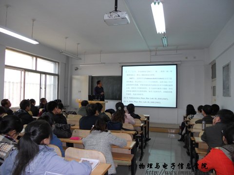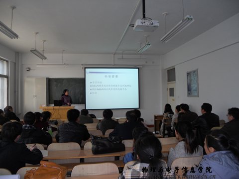 参加此次活动的报告人有:海鹰博士,报告题目《基于计算机视觉的汽车安全》;姜永静博士,报告题目《指数矩阵及其在模式识别中的应用》;曹永军博士,报告题目《人工微结构复合材料——磁振子晶体》;张敏博士,报告题目《InGaN纳米线异质结构的激子态和带间光跃迁》。