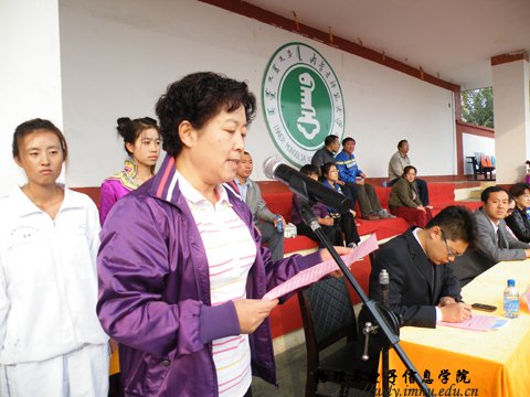 阿梅书记代表学院党政领导在开幕式上发表了讲话。她说:开展体育运动,有助于提高师生员工的健康水平;有助于培养师生员工的团体精神和集体荣誉感,增强学院的凝聚力。希望广大师生弘扬体育精神,团结拼搏,勇创佳绩,赛出风格和水平,展示我院学生蓬勃向上的精神风貌。随后裁判员代表和运动员代表分别进行了庄严的宣誓。开幕式上由音乐学院选送的节目更是获得了广大师生的一片喝彩!