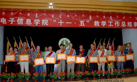 7月14日下午,我院在生物楼报告厅隆重召开 “十一 • 五”教学工作总结表彰大会。副校长照日格图教授,教务处处长王来喜教授,研究生院副院长穆城利老师,计算机与信息工程学院党总支书记辛智俊老师应邀出席了本次大会,学院全体领导、教职工、以及研究生本科生近五百人参加了大会。会议由副院长吉日嘎拉老师主持。 会上,由院长张伟教授代表学院做“十一 • 五”教学工作总结报告,报告从教学管理制度建设、质量保障与监控体系建设、师资队伍建设、实验室建设、教材建设、教风与学风建设、实践创新文化氛围营造、实习实践基地建设以及研究生教育等十个方面回顾和总结了学院在 “十一 • 五”期间教学工作取得的成绩和经验,并表彰奖励多年来辛勤耕耘、努力工作、锐意改革,在教学与管理一线做出突出成绩的教职员工:分别授予松林等14位同志“教学成就奖”,授予斯琴巴特尔等5位同志“蒙语教学先进个人” 荣誉称号,授予刘淑琴等14位同志“教学骨干奖”,授予张丽娜等3位同志“教坛新秀奖”,授予斯琴高娃等6位同志“教育管理先进个人” 荣誉称号,同时,还表彰奖励学风建设先进班集体与先进个人。颁奖仪式后,获奖教师代表和学生代表相继发言。 照日格图副校长代表学校对本次大会的胜利召开表示祝贺,对获奖的教师,同学进行了勉励,并肯定了学院在“十一 • 五”期间教学工作取得的成就,还对“十二 • 五”教学工作进行指导并寄予厚望。 在这承前启后、继往开来的2011年,学院隆重召开“十一 • 五”教学工作总结表彰大会,为学院“十二 • 五”教学工作营造开局之势,我们坚信,“十二 • 五”期间我院教学工作必将再上一个新台阶,人才培养质量再创一个新水平。