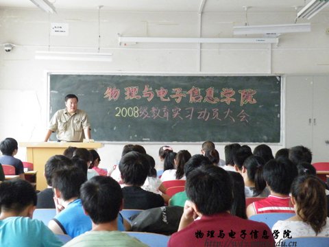 8月31日15:00我院在田楼223召开了08级物理系教育实习动员大会,参加动员大会的老师有副院长吉日嘎拉老师、物理系孙咏萍老师、那日苏老师。会议由物理系主任张敏老师主持。