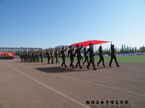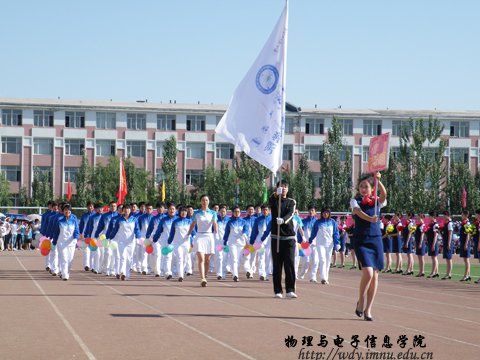 6月13日8:00我院在盛乐校区参加了我校第四十九届田径运动会。开幕式上我院方队精神饱满、斗志昂扬。展现了物电人积极向上的精神风貌。