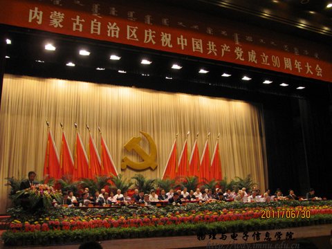 6月30日16:30在自治区礼堂我院35名同学参加了内蒙古自治区庆祝中国共产党成立90周年大会。大会由内蒙古自治区党委副书记、自治区主席巴特尔主持。