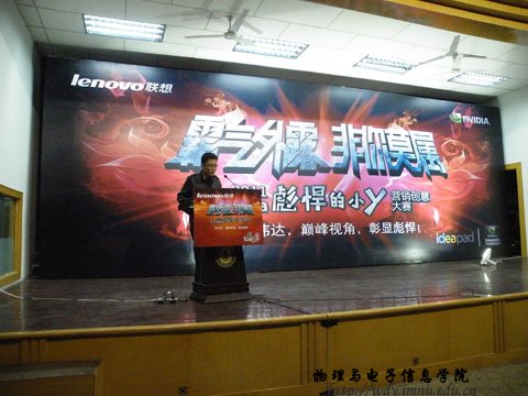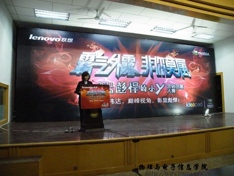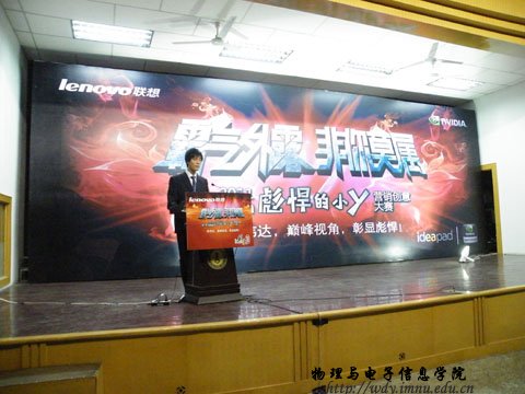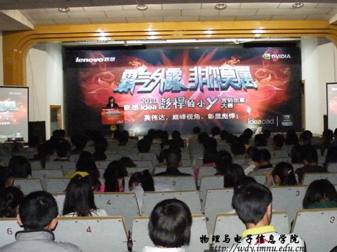 4月26日19:00联想集团在生物楼报告厅召开“霸气外露,非你莫属”--2011联想idear彪悍的小y营销创意大赛校园宣讲会。本次宣讲会由内蒙古师范大学联想idear精英汇第一届会长我院08工程4班赵鹏同学主持。参加本次宣讲会的嘉宾、领导有:联想集团晋蒙分区消费业务处业务经理王翠敏,联想集团晋蒙分区商用业务处业务经理任胜龙,联想集团晋蒙分区消费业务处品牌经理于磊,js333线路检测中心党总支副书记兼副院长辛智俊老师,js333线路检测中心团总支书记何小龙老师,盛乐校区管委会张伟老师。