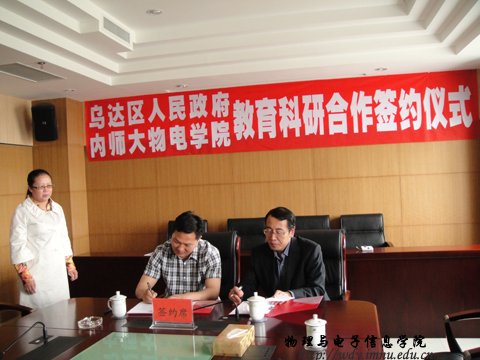 乌达区区委常委、党办主任邵伟及乌达区教育局领导和部分中学校长,我院党总支书记阿梅、党总支副书记兼副院长辛智俊等出席签约仪式。